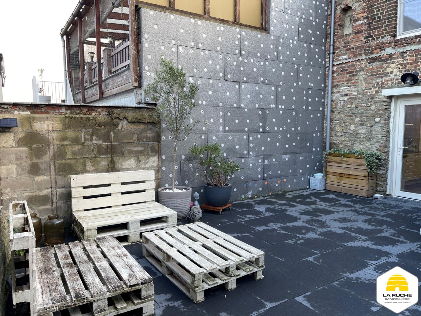 À l’extérieur : terrasse orientée Nord-Ouest.