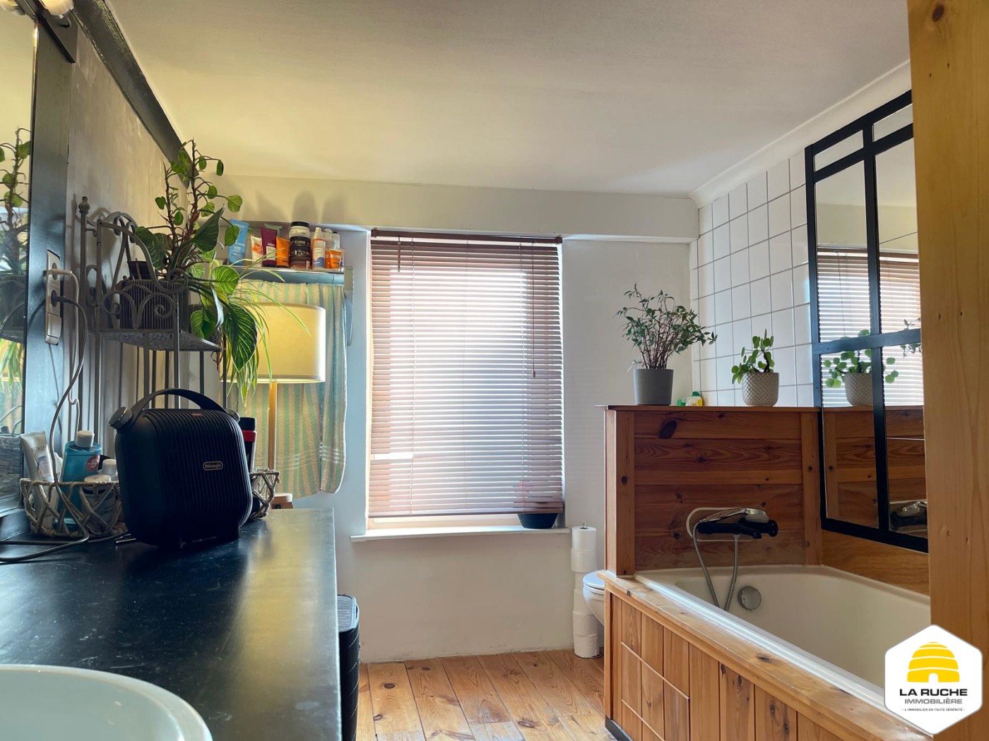 Maison 2 façades de 117m² nets habitables, rénovée, située sur une parcelle de 1a45ca, comprenant 3 chambres, terrasse orientée Nord-Ouest, cave, raccordée au réseau d’égouttage avec une électricité conforme jusqu’en 2047.