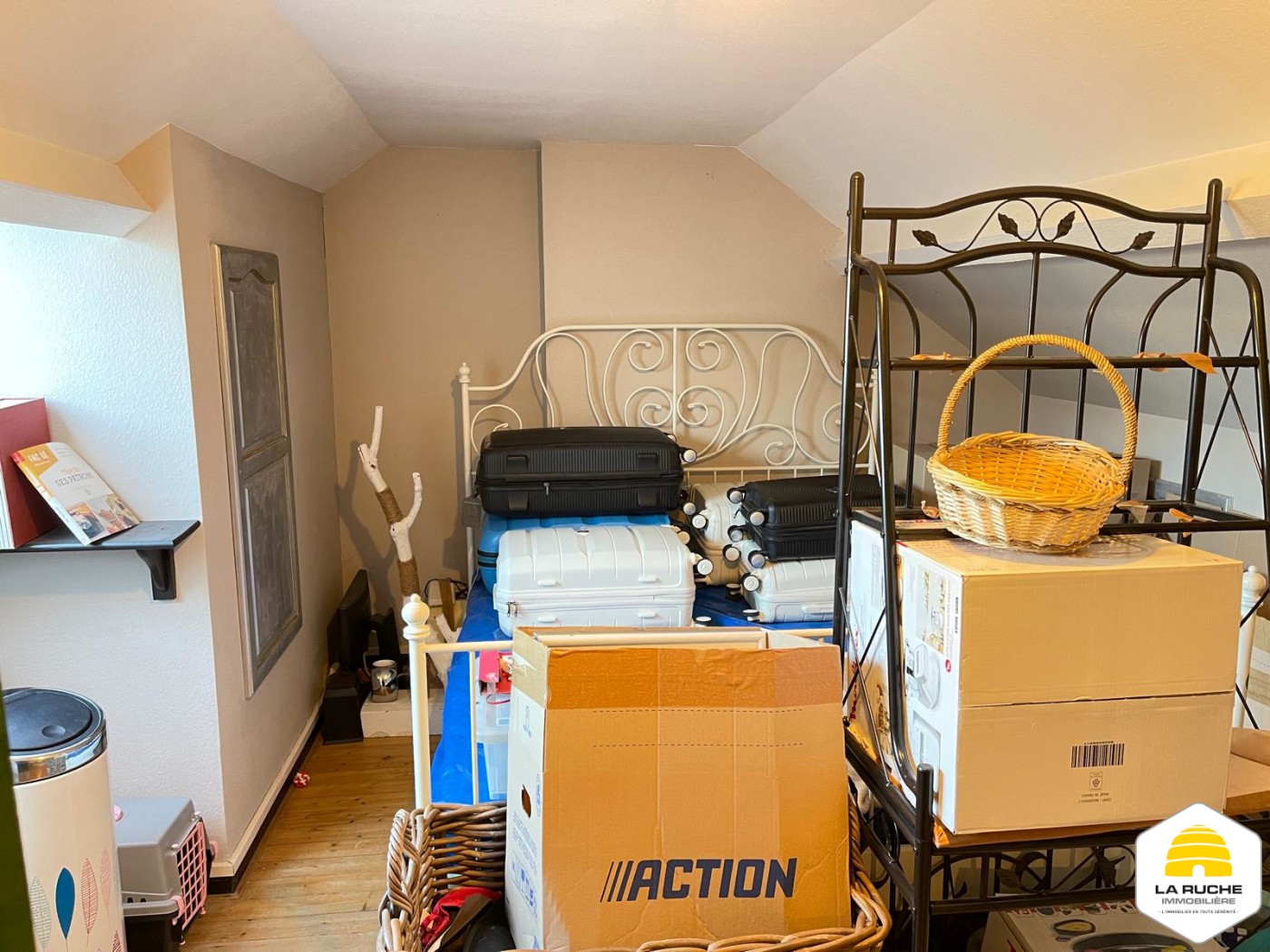 Au 2ème étage : chambre (12,81m²), grenier (13,95m² – accès partiel par escalier fixe et autre accès via une trappe dans l’une des chambres).
