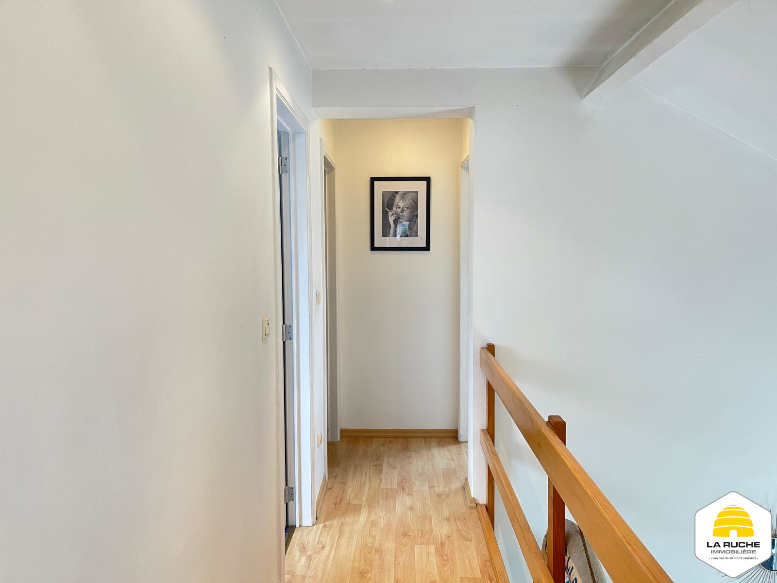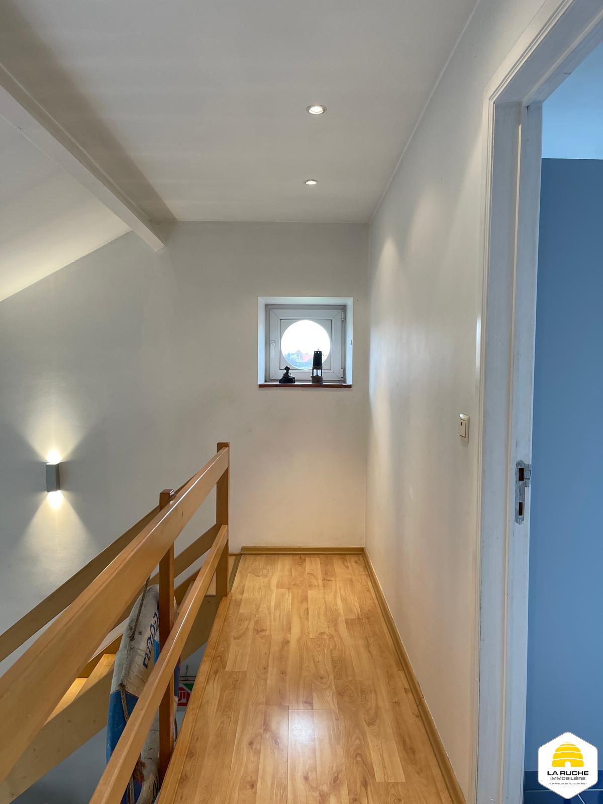 Au deuxième niveau : palier/hall de nuit (4,45m²), salle de douche (5,2m²/équipements : WC classique, douche, lavabo), deux chambres (12,4 m²/10 m²)