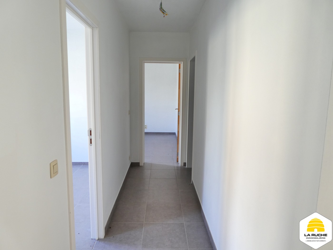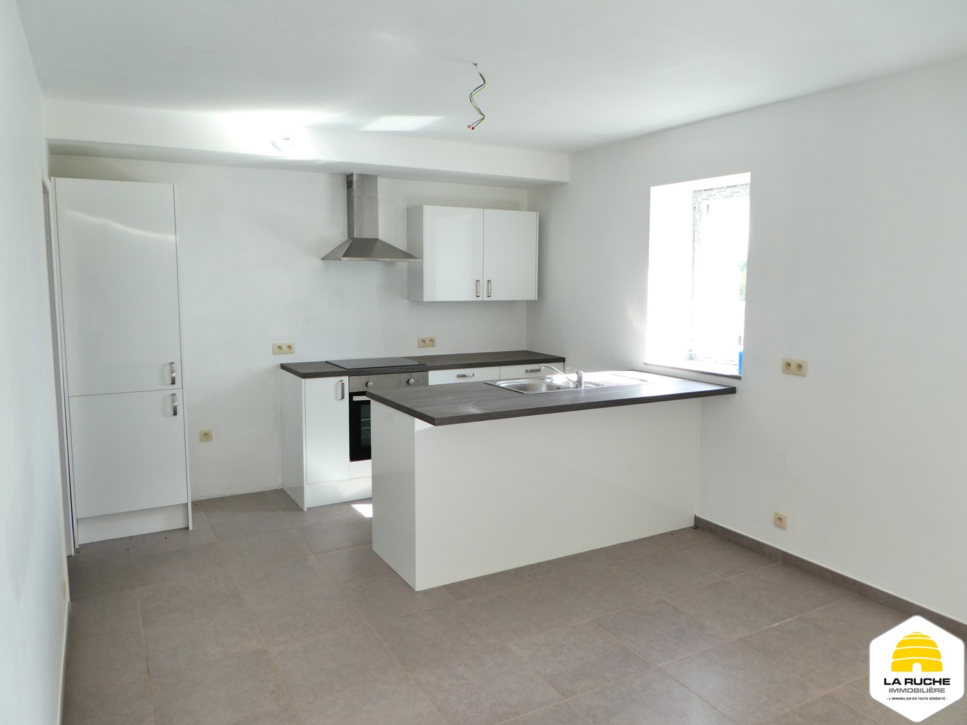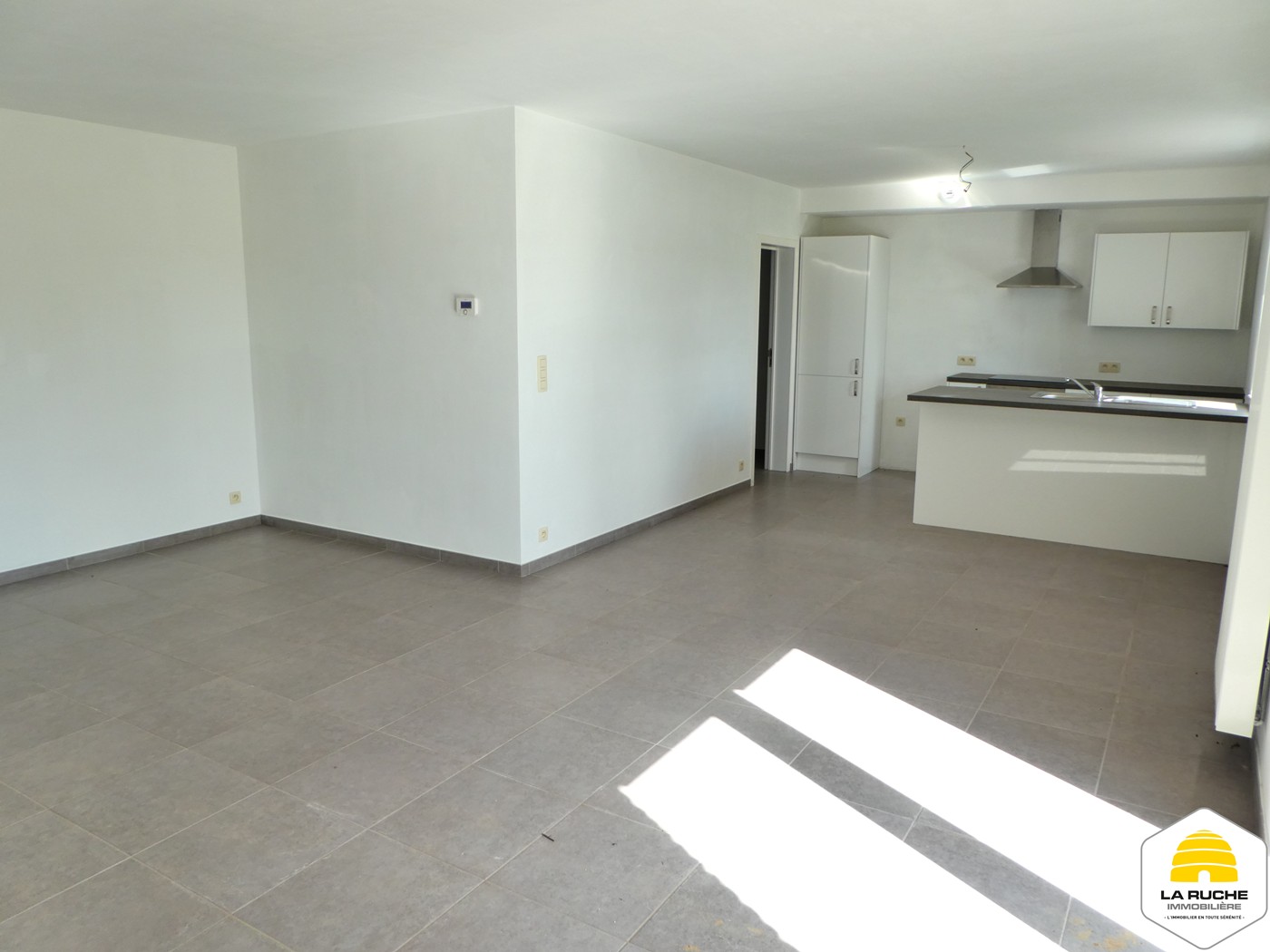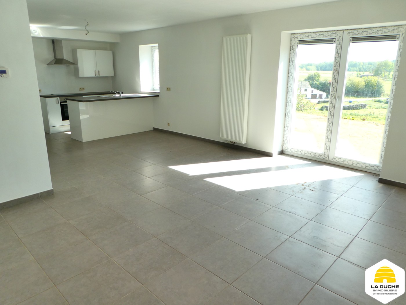 Composition : hall de jour (8,85m²), Logette de toilette (2m²/équipements : WC suspendu et lave-mains), coin vestiaire, vaste et lumineux espace séjour (25m² avec baie-vitrée sur jardin et vue sur campagne), cuisine ouverte semi-équipée (16m²/équipements : four, taques vitrocéramiques, hotte, possibilité de placer frigo et lave-vaisselle), espace buanderie/chaufferie (4,5m²), hall de nuit, salle de bains (6m² /équipements : baignoire, meuble simple vasque), 2 chambres (13m²/10m²) ;