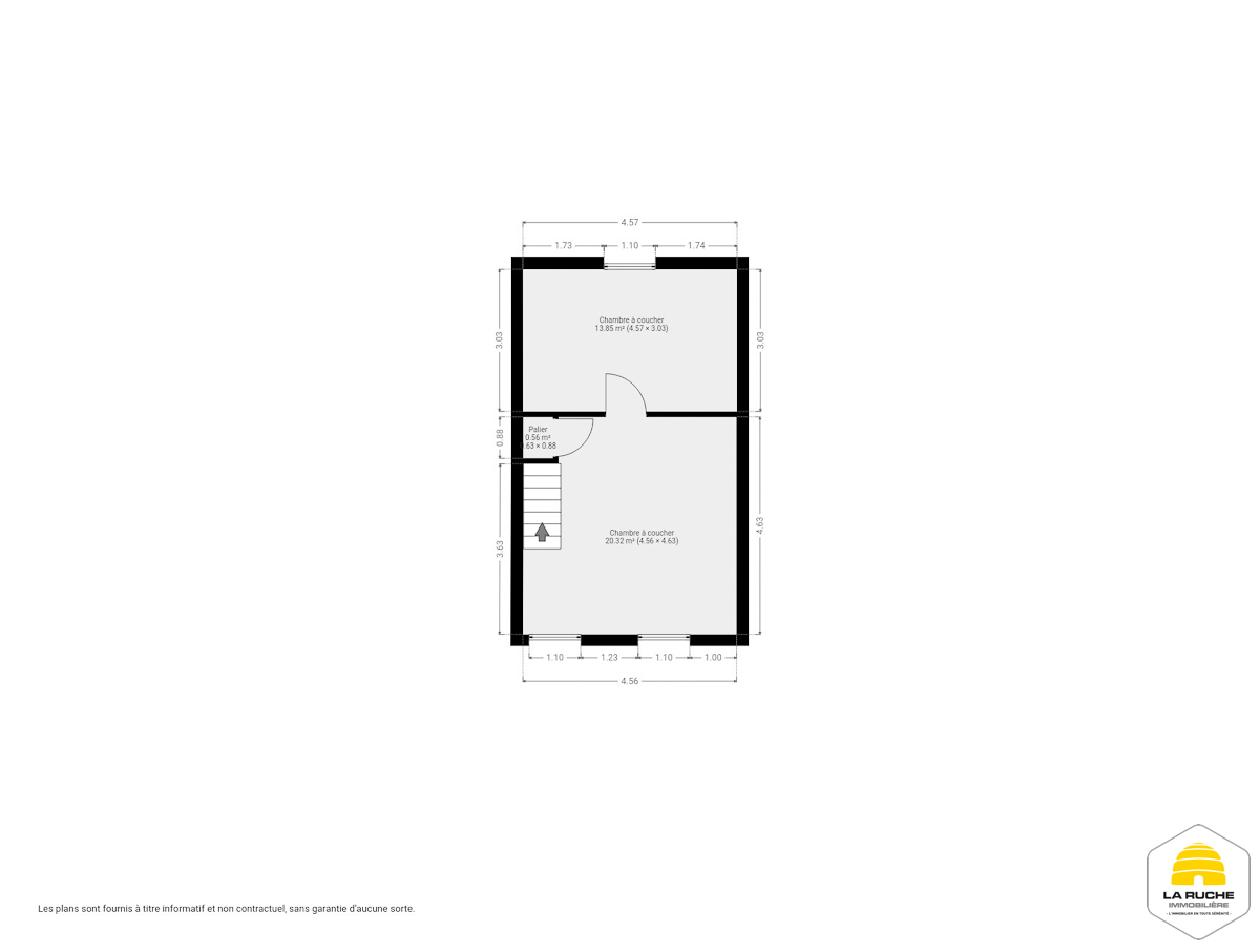 Au 1er étage : chambre à coucher (20,32 m²), chambre à coucher (13,85 m²).