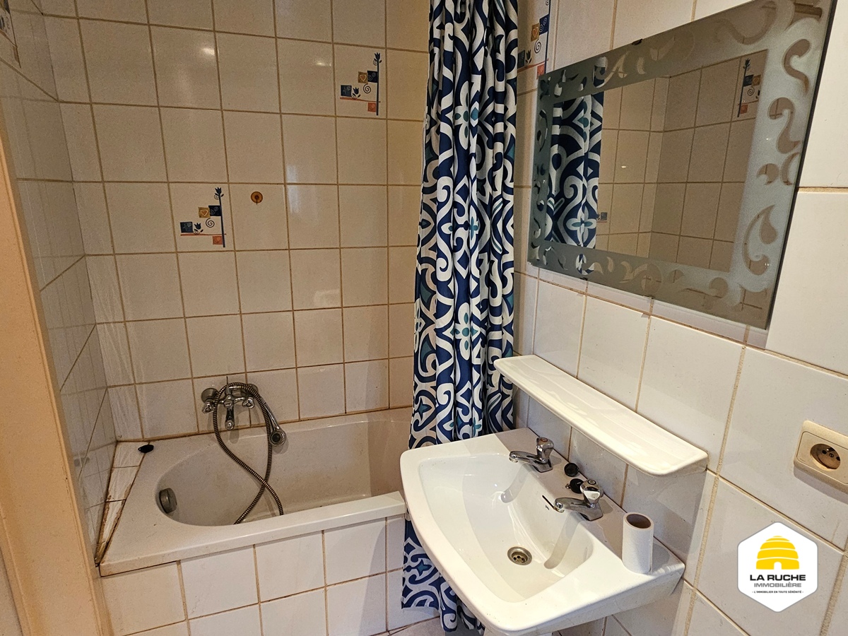 Au rez: hall d’entrée (2m²), séjour (26,5m²) avec cheminée tubée en 2020, cuisine (7m²/four, taques électriques), SDB (3,5m²/baignoire, WC, évier simple), buanderie (3m²), hall (3,5m²).