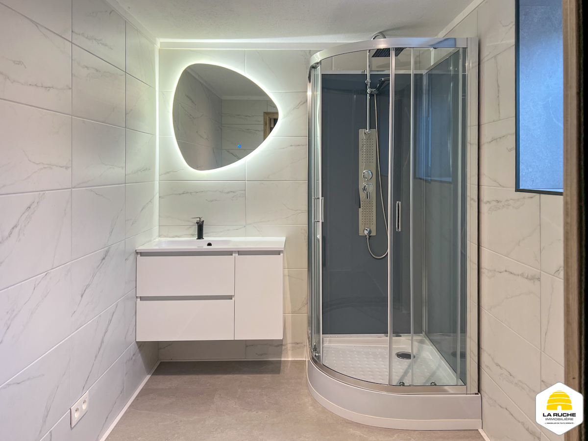 Châssis PVC double vitrage – pompe à chaleur air/air (chaud/froid) – isolation performante – boiler thermodynamique – installation électrique conforme – cave.