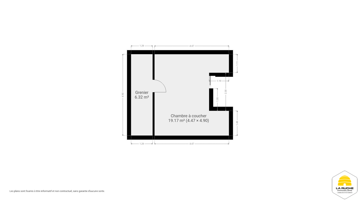 Au 2ème étage : chambre de 19,17 m² et grenier de 6,32 m².