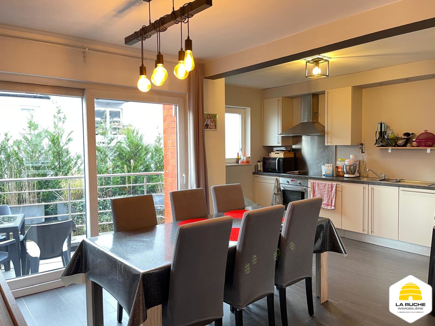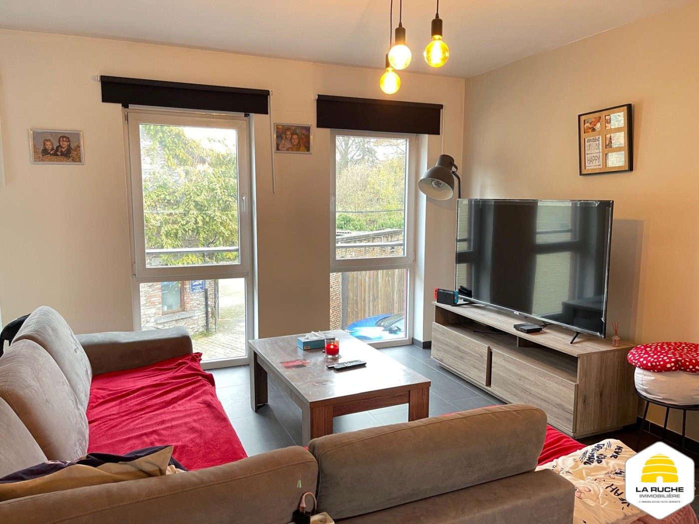 Appartement lumineux de type « bel-étage », d’une superficie de 88m² nets habitables (hors garage), comprenant un séjour et une cuisine ouverte équipée, deux chambres, un balcon, une buanderie et un garage et une cour. Étage accessible via escalier (PAS D’ASCENSEUR), énergies individualisées (eau, gaz, électricité), chaudière au gaz de ville. Disponibilité : 01/01/2026.