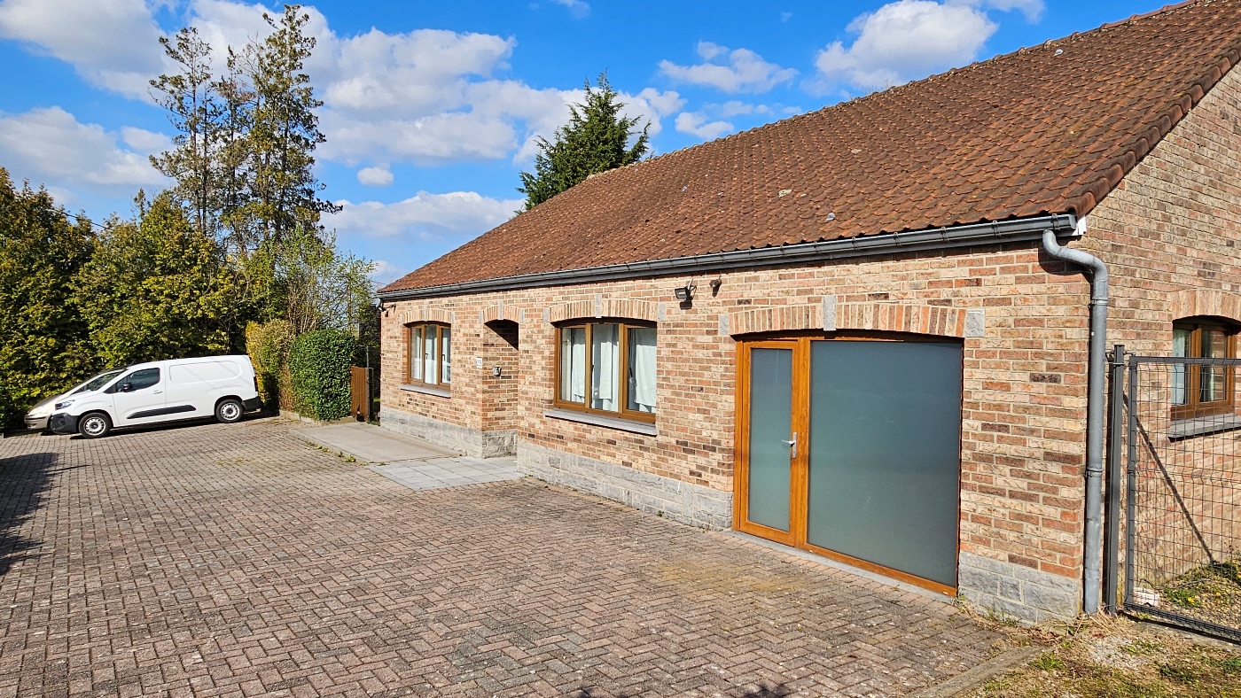 Belle villa plain-pied de 180m² nets (hors grenier aménagé) comprenant 2 chambres, grenier aménagé (hauteur sous plafond à 195cm) sur une grande propriété de 20a45ca. Grand parking en devanture avec 2 entrées. PEB C et électricité conforme.